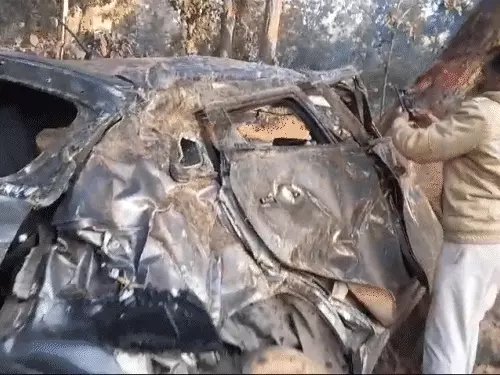 कार बुरी तरह क्षतिग्रस्त