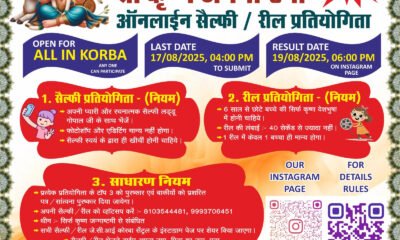 कोरबा। जेसीआई कोरबा सेंट्रल एवं जेसीआरटी विंग द्वारा आगामी श्री कृष्ण जन्माष्टमी के पावन अवसर पर कोरबा के सभी नागरिकों के लिए एक आकर्षक एवं निःशुल्क...