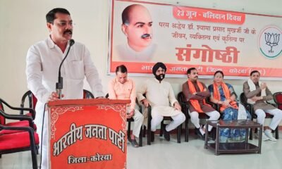 डॉ. श्यामा प्रसाद मुखर्जी के बलिदान दिवस पर कोरबा भाजपा कार्यालय में संगोष्ठी एवं वृक्षारोपण, वक्ताओं ने रखे विचारमुख्य वक्ता लक्ष्मीकांत जोशी ने कहा कि डॉ....