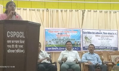 कोरबा । सत्येन्द्र कुमार साहू, प्रधान जिला एवं सत्र न्यायाधीश एवं अध्यक्ष जिला विधिक सेवा प्राधिकरण कोरबा के निर्देशानुसार 12 जून 2024 को विश्व बाल श्रम...