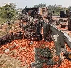 झांसी,एजेंसी। उत्तर प्रदेश के झांसी में हाईवे पर तेज रफ्तार ट्रक पलट गया। ट्रक में 1800 Kg टमाटर लदा था। ट्रक के पलटते ही टमाटर हाईवे...