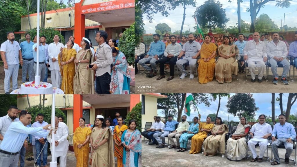 नगर पालिका परिषद बांकीमोंगरा – के कार्यक्रम में पालिका अध्यक्ष श्रीमती सोनी कुमारी झा, उपाध्यक्ष श्रीमती गायत्री कंवर, पालिका अधिकारी ज्योत्सना टोप्पो, पालिका के अधिकारीगण, कर्मचारीयो द्वारा झंडा फहराया गया। जहां पर भाज.यु.मो. छत्तीसगढ़ प्रदेश कोषाध्यक्ष विकास झा, विधायक प्रतिनिधि लखपत शर्मा, गोवर्धन सिंह कंवर, वार्डो के पार्षद पार्षद व प्रतिनिधि और नगरवासी उपस्थित रहे।