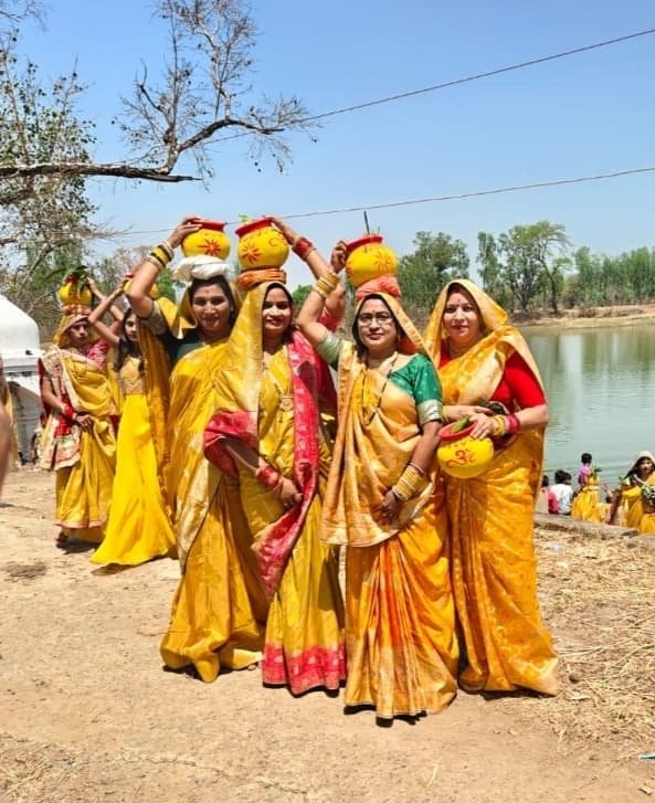 पीले वस्त्रों में सजी महिलाओं ने प्रस्तुत किया भक्ति का अनुपम दृश्य