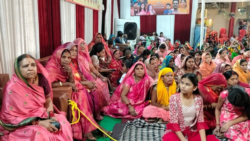 दिव्य श्री हनुमंत कथा के शुभारंभ पर पीले वस्त्रों में सजी श्रद्धालु महिलाओं ने रचा भक्ति, अनुशासन और संस्कृति का अद्भुत संगम