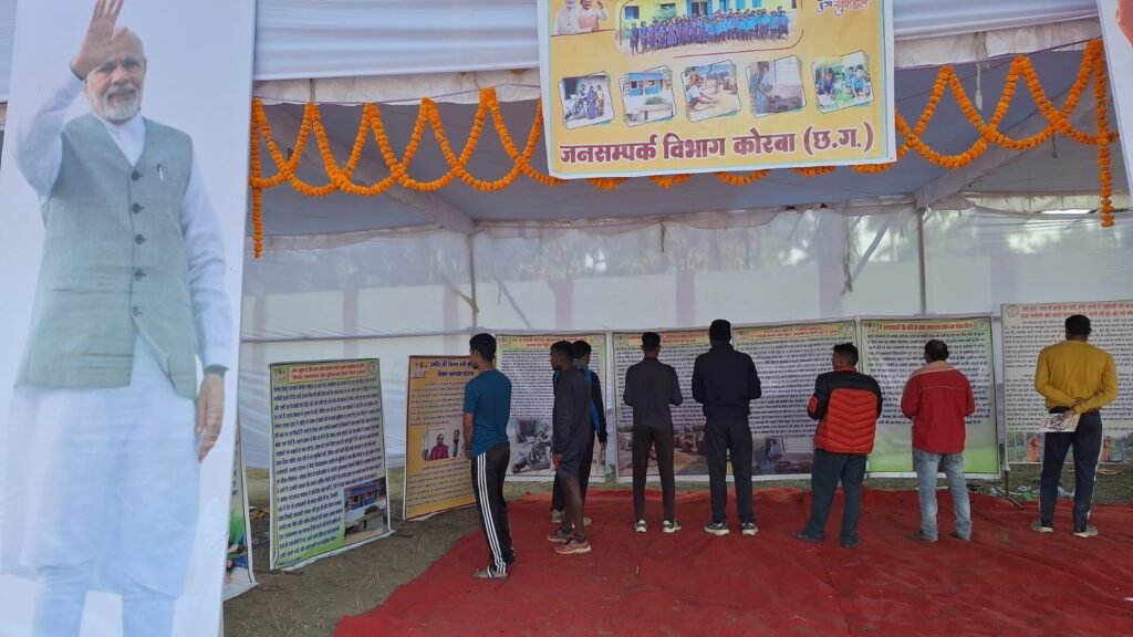 ’कोरबा । प्रदेश के मुख्यमंत्री विष्णुदेव साय के कुशल नेतृत्व एवं राज्य सरकार के 01 वर्ष पूर्ण होने के उपलक्ष्य में ‘‘सुशासन का एक साल छत्तीसगढ़ हुआ खुशहाल’’ की थीम पर जिला जनसंपर्क कार्यालय द्वारा सीएसईबी फुटबॉल मैदान में छायाचित्र प्रदर्शनी लगाई गई। सरकार की विभिन्न जनकल्याणकारी योजनाओं के तहत जिले में पिछले एक वर्ष में हुए महत्वपूर्ण कार्य एवं जिले की उपलब्धियों को छायाचित्रों के माध्यम से प्रदर्शित किया गया। बड़ी संख्या में लोगों ने प्रदर्शनी का अवलोकन किया। आमजनों को महतारी वंदन योजना, जल जीवन मिशन अंतर्गत लगे नल, पहाड़ी कोरवाओं के युवा बेरोजगारों को नौकरी मिलने के बाद हुए सकारात्मक परिवर्तन एवं अन्य योजनाओं के लाभ से जीवन में आए बदलाव को बताया गया।