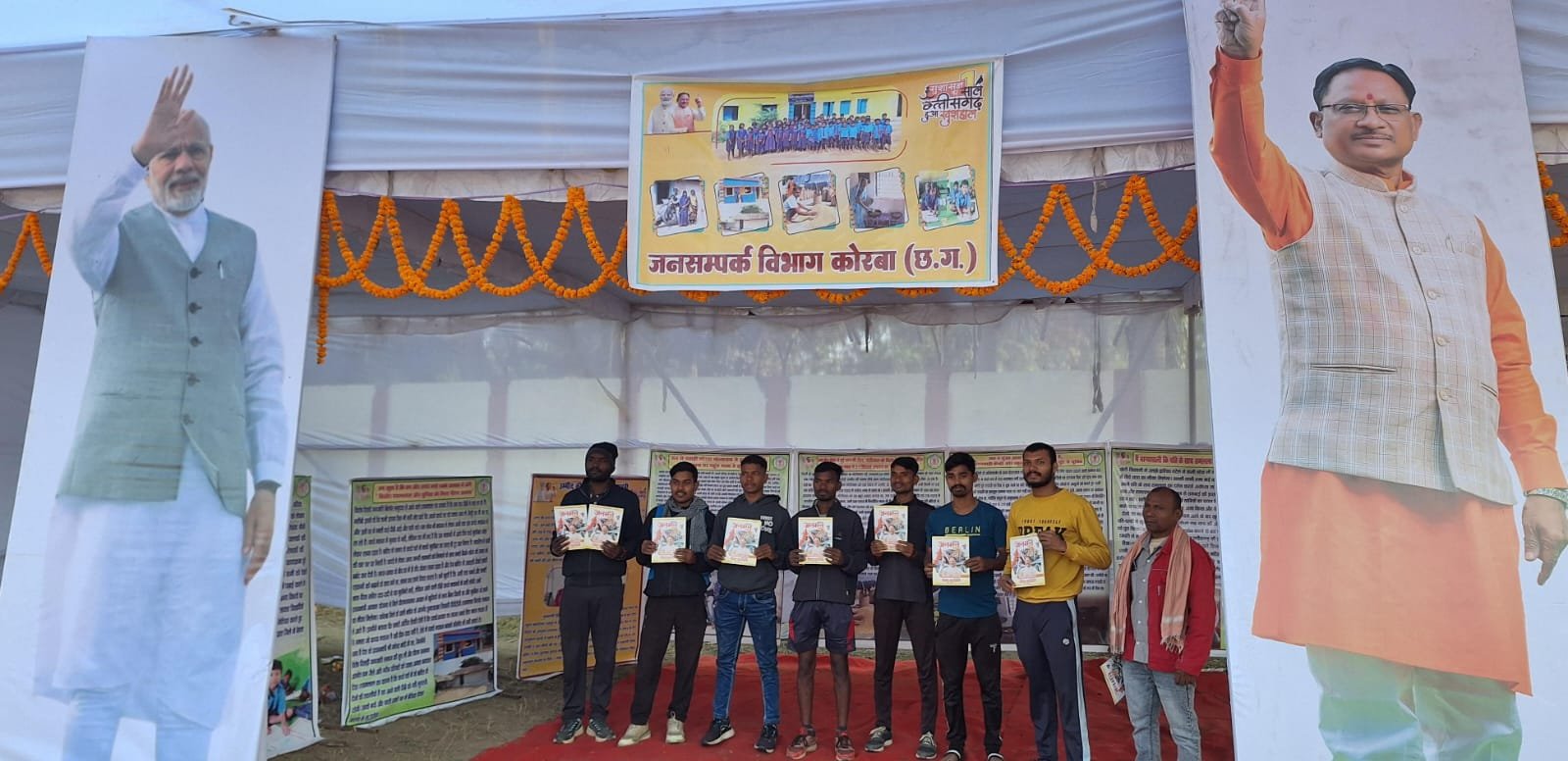 साथ ही शिविर में जनसंपर्क विभाग द्वारा प्रकाशित सुशासन के नवीन आयाम विकास पथ पर अग्रसर छत्तीसगढ़, उदित छत्तीसगढ़ सशक्त नेतृत्व से प्रगति का स्वर्णिम युग, मासिक पत्रिका जनमन, रोजगार और नियोजन सहित अन्य ब्रोसर, पाम्पलेट व पत्रिकाओं का वितरण भी किया गया।