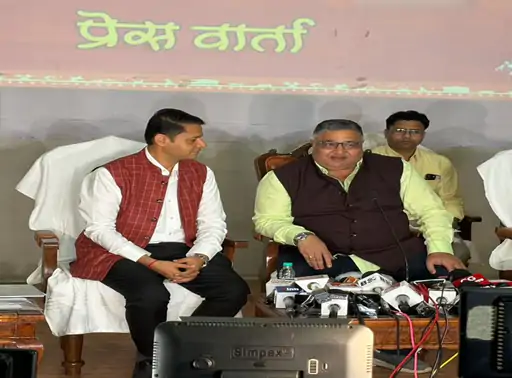 मंत्री राजेश अग्रवाल राज्य अलंकरण समारोह की घोषणा करते हुए।