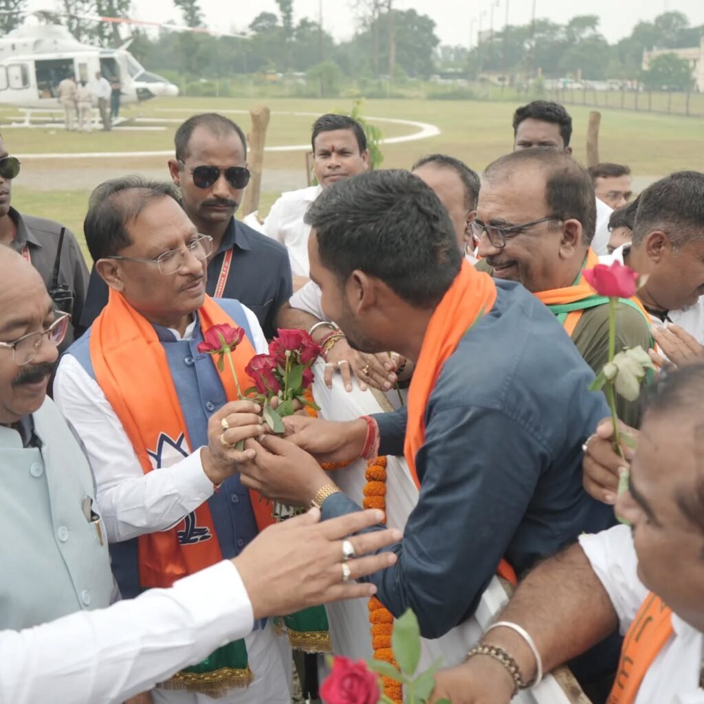 पुलिस लाईन हेलीपेड पहुंचने पर मुख्यमंत्री विष्णुदेव साय सहित मंत्रियों का भाजपा नेताओं एवं अधिकारियों ने भव्य स्वागत किया। जिलेभर से आए भाजपा नेताओं में मुख्यमंत्री से मिलने एवं स्वागत करने की होड़ दिखी।