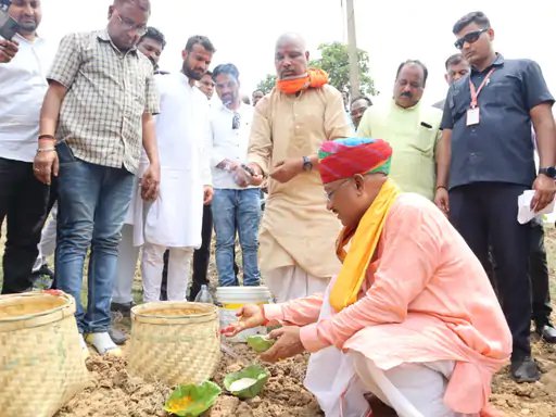 मुख्यमंत्री साय खेती-किसानी का पारंपरिक परिधान पहनकर खेतों में नजर आए। वो पगड़ी और पारंपरिक वस्त्र पहने नजर आए। इसके बाद टोकरी में धान बीज रखे और इनकी पूजा की। उसके बाद पांच बार बीजों को अपने हाथों में लेकर खेत में बोए।