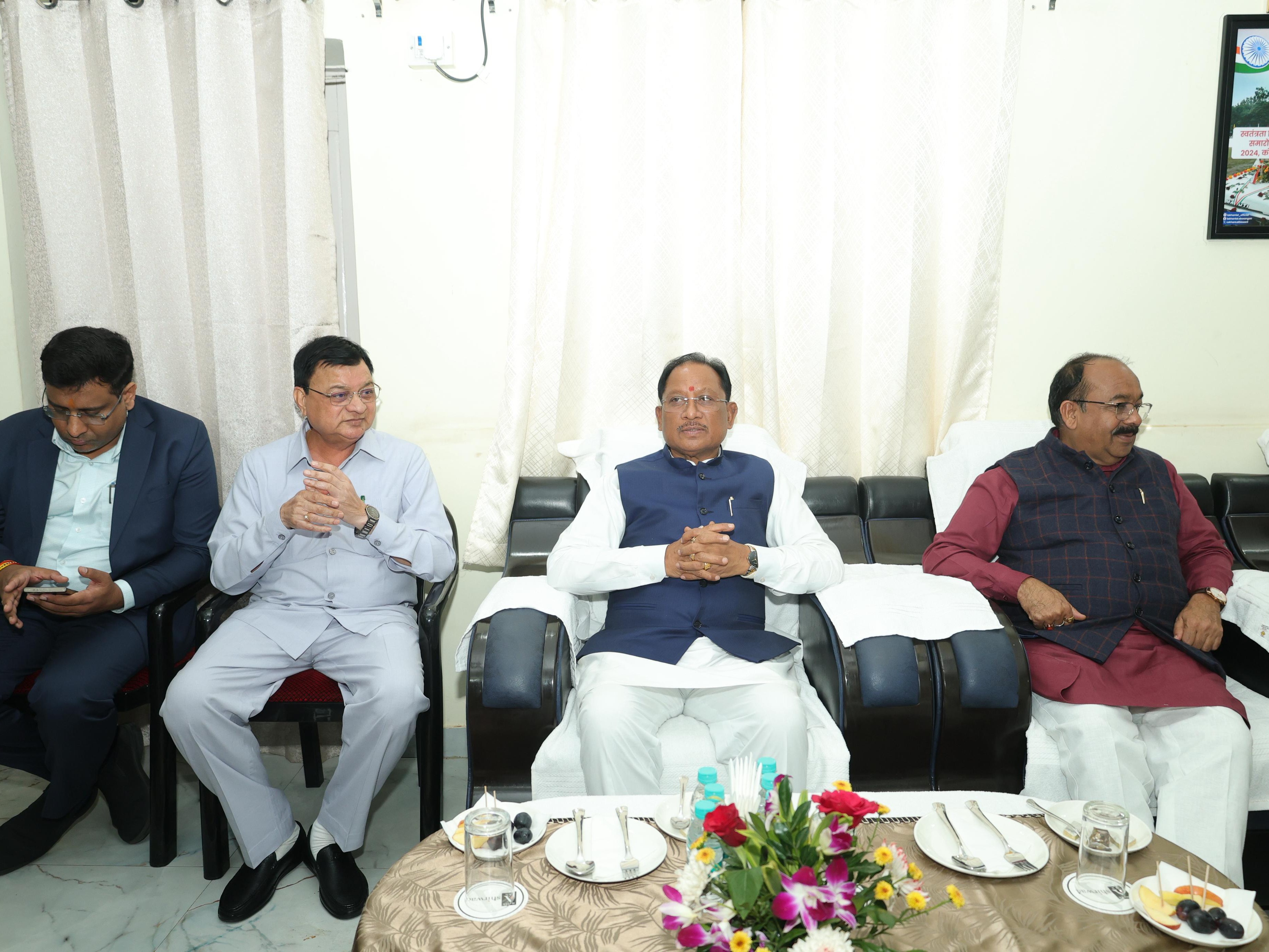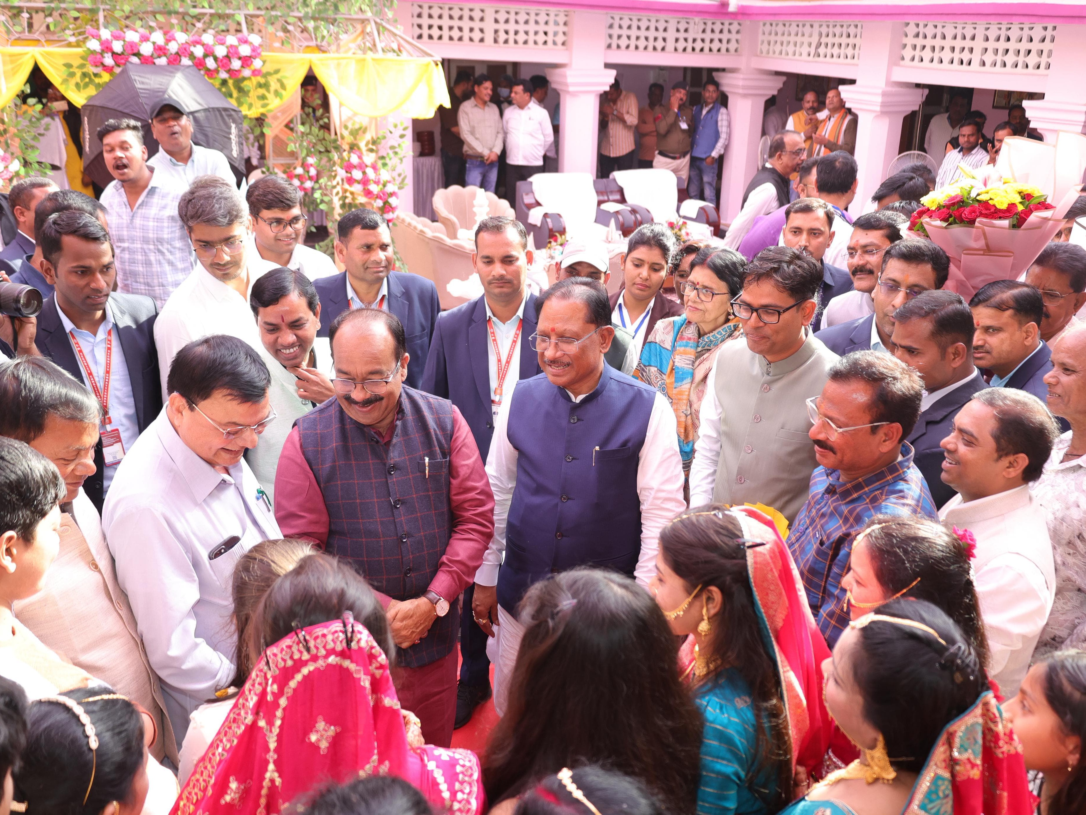 CM, डिप्टी सीएम, वित्त मंत्री कोरबा पहुंचे:श्रम मंत्री के भाई की शादी में हुए शामिल, नव दंपती को दिया आशीर्वाद