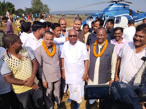 भाजपा के हेलीकॉप्टर से कुसमी पहुंचे कांग्रेस विधायक चिंतामणि महाराज