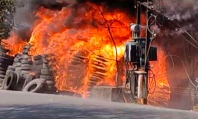 ब्रेकिंग – दुकान के बाहर रखे टायरो के ढेर में लगी आग….पास में। ट्रांसफार्मर और100 मीटर की दूरी पर पेट्रोल पंप…देखे पूरी खबर
