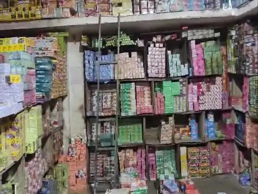 17 लाख का पटाखा जब्त:किराना दुकान संचालक के गोदाम में पुलिस ने मारा छापा, तलाशी में 170 कार्टन में भरे मिले पटाखे
