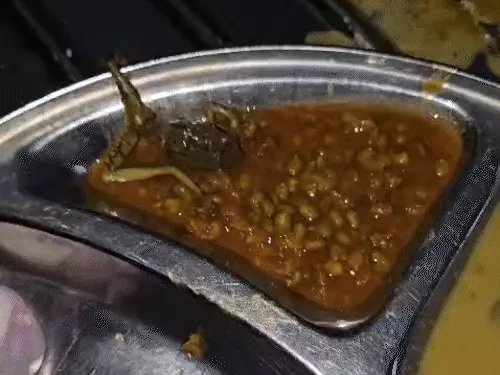 बताया जा रहा है मूंग की दाल में मेंढक पूरा पक गया था।