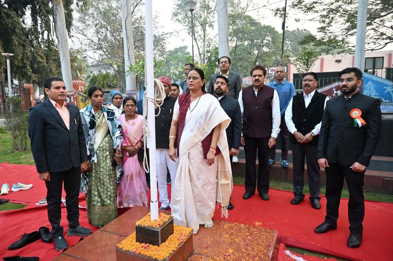 कोरबा। महापौर श्रीमती संजूदेवी राजपूत ने नगर पालिक निगम कोरबा के मुख्य प्रशासनिक भवन साकेत में आयोजित गणतंत्र दिवस समारोह में ध्वजारोहण किया। इस अवसर पर सभापति नूतन सिंह ठाकुर, आयुक्त आशुतोष पाण्डेय सहित पार्षदगण, जनप्रतिनिधिगण व निगम के अधिकारी कर्मचारी उपस्थित थे।