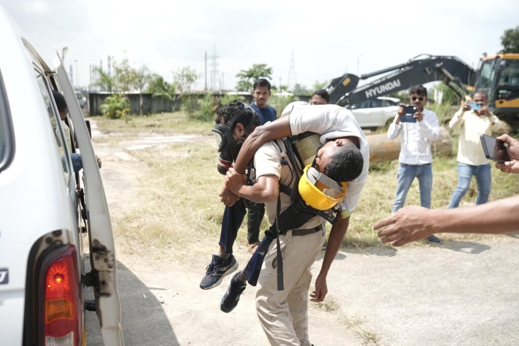 मेडिकल टीम ने गैस से प्रभावित व्यक्तियों का प्राथमिक उपचार किया। उन्हें ताजी हवा में लाया गया, आँखों और त्वचा को साफ पानी से धोने की प्रक्रिया दिखाई गई तथा सांस लेने में कठिनाई होने पर ऑक्सीजन सपोर्ट प्रदान किया गया, साथ ही उपस्थित लोगों को विस्तार से बताया कि क्लोरीन गैस के संपर्क में आने से खाँसी, सांस लेने में कठिनाई, आँखों में जलन, गले में खराश और सिरदर्द जैसी समस्याएँ उत्पन्न होती हैं। गंभीर स्थिति में यह फेफड़ों को प्रभावित कर सकती है। ऐसे में व्यक्ति को तुरंत दूषित वातावरण से बाहर निकालना चाहिए, प्रभावित स्थान को खाली करना चाहिए और चिकित्सीय सहायता लेनी चाहिए।