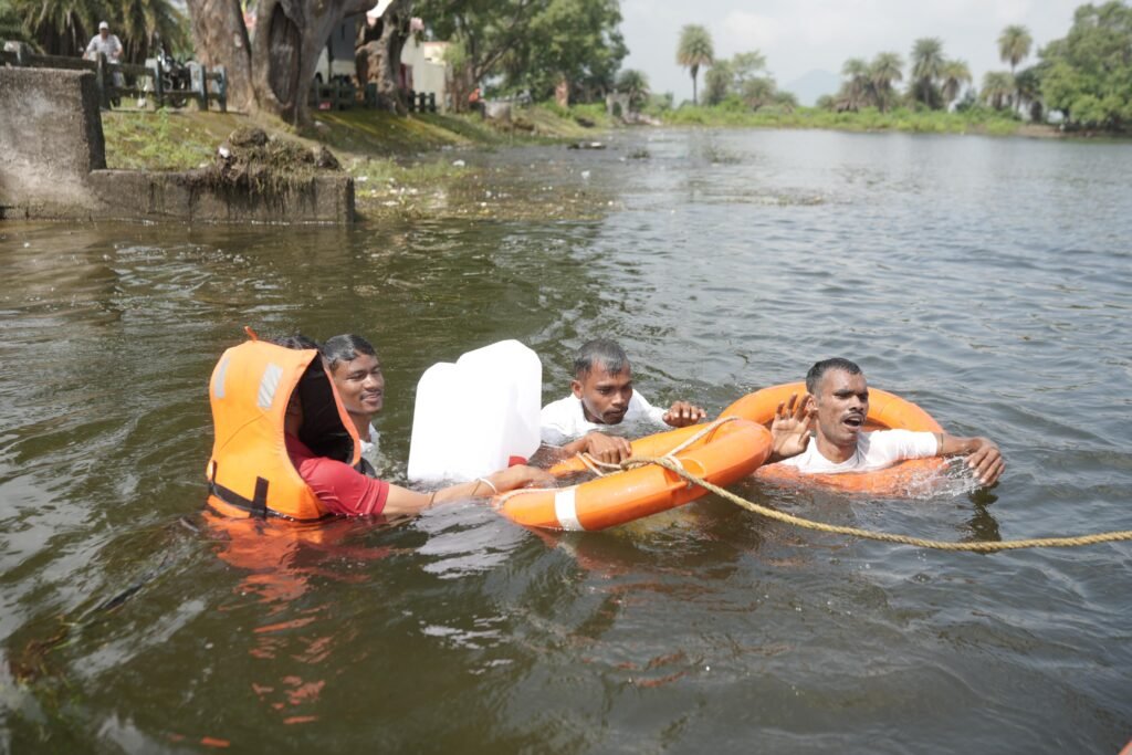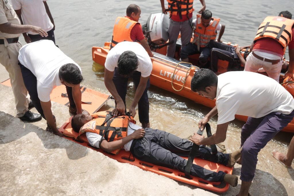 सबसे पहले प्रशिक्षित गोताखोरों और रेस्क्यू टीम ने पानी में फँसे व्यक्तियों की पहचान की, फँसे व्यक्तियों तक रस्सियाँ और लाइफ जैकेट पहुँचाई गईं, नाव और टीम के सहयोग से सभी व्यक्तियों को पानी से बाहर लाकर किनारे तक पहुँचाया गया, मेडिकल टीम ने तत्काल मौके पर ही उनका स्वास्थ्य परीक्षण किया। डूबने की स्थिति में कृत्रिम श्वसन (सीपीआर), ऑक्सीजन सपोर्ट और प्राथमिक दवाओं का प्रदर्शन किया गया और गंभीर स्थिति के अनुमानित मरीजों को एम्बुलेंस से अस्पताल ले जाने की प्रक्रिया का भी अभ्यास किया गया।