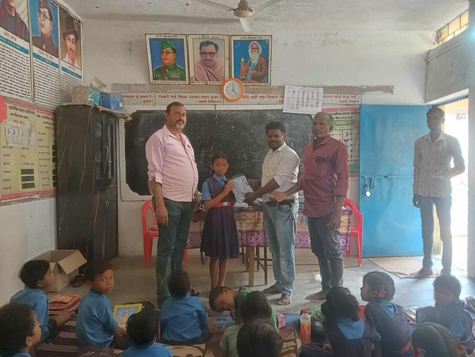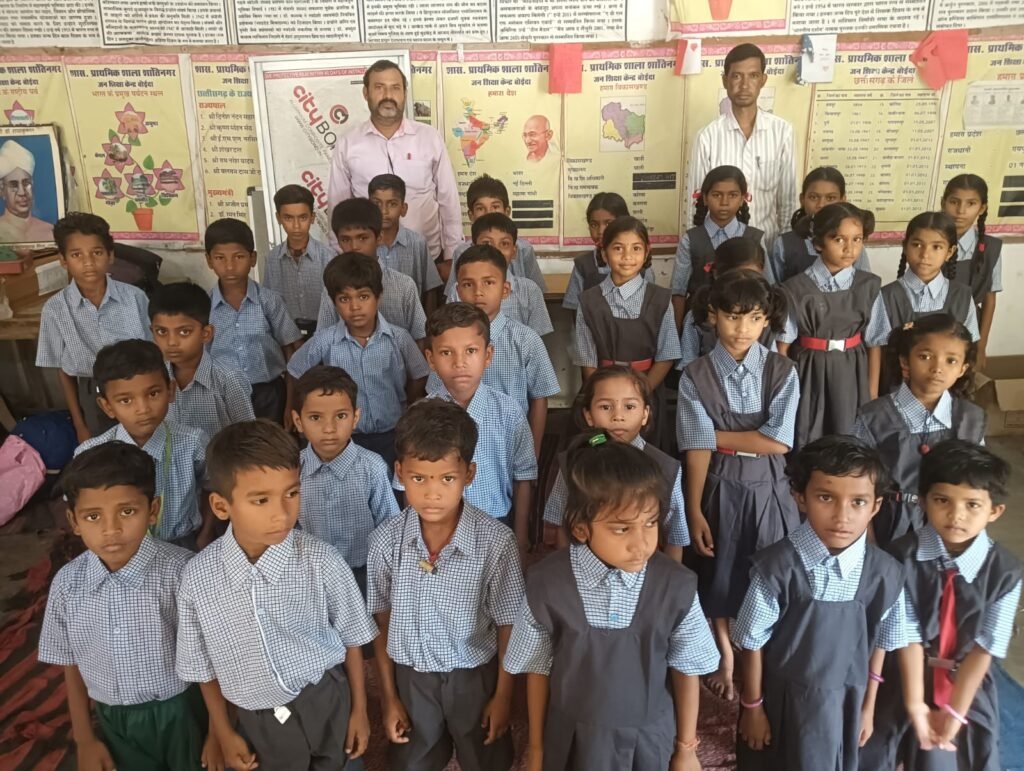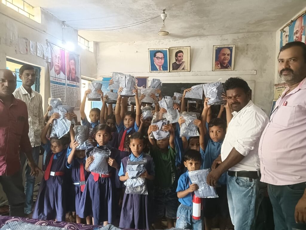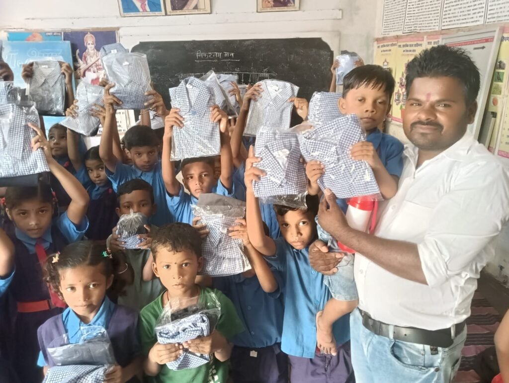 शांतिनगर स्कूल में सरपंच द्वारा किया गया गणवेश का वितरण