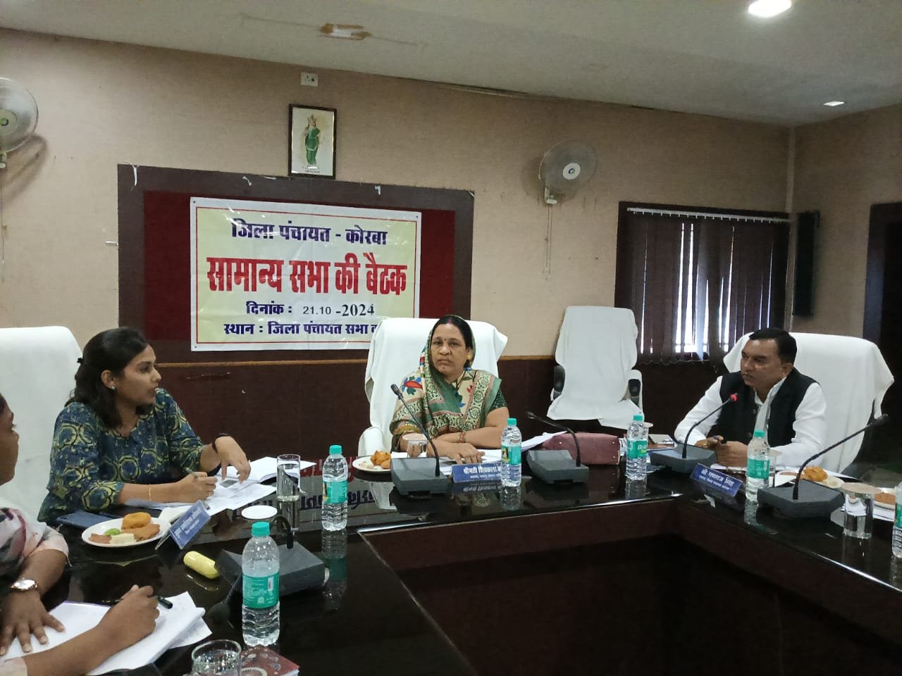 कोरबा । जिला पंचायत के सभागार में सोमवार को जिला पंचायत अध्यक्ष श्रीमती शिवकला सिंह कंवर की अध्यक्षता में जिला पंचायत की सामान्य सभा की बैठक में जिला पंचायत विकास निधि वर्ष 2024-25 के तहत 61 लाख रुपए के ग्रामीण विकास की कार्ययोजना का अनुमोदन किया गया।