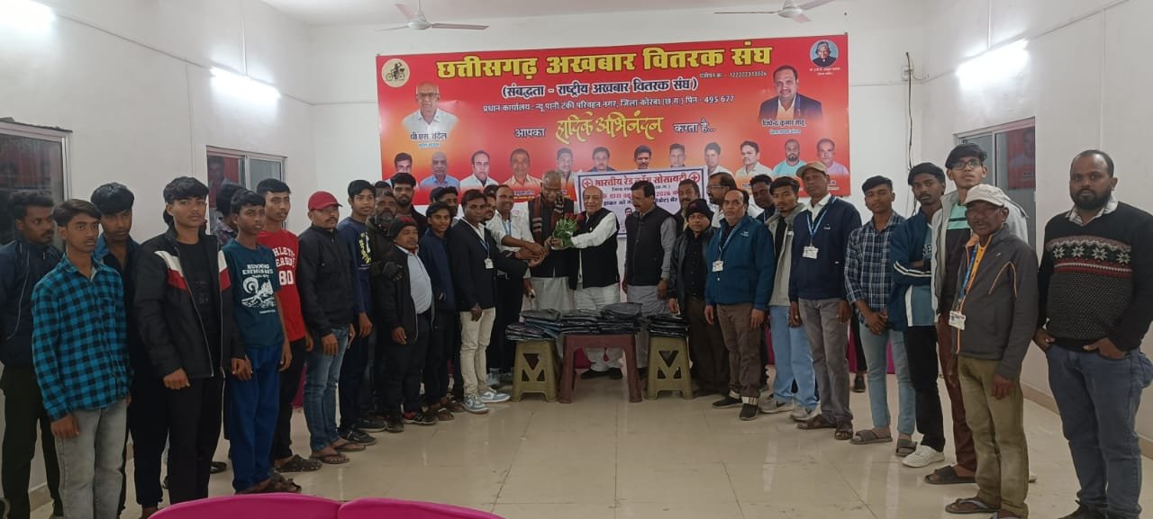 कोरबा। इन दिनों छत्तीसगढ़ सहित कोरबा जिला में कड़कड़ाती ठंड पड़ रही है। हाड़-मांस कंपा देने वाली ठंड के कारण सामान्य जीवन जहां अस्त-व्यस्त हो गया है और लोगों का घर से निकलना दूभर हो गया है, ऐसे में सुबह 4.00 बजे उठकर अखबार वितरक घर से निकल कर 5.00 बजे से अखबार वितरण का काम प्रारंभ कर देते हैं। कड़कड़ाती ठंड में सुबह-सुबह अखबार वितरण का काम किसी चुनौती से कम नहीं। उक्त उद्गार जिला रेडक्रास सोसायटी के जिला अध्यक्ष एवं कोरबा के समाजसेवी रामसिंह अग्रवाल के हैं। वे टीपी नगर स्थित अखबार वितरक संघ के प्रधान कार्यालय में एक कार्यक्रम को संबोधित कर रहे थे। जिला रेडक्रास सोसायटी ने कड़कड़ाती ठंड को देखते हुए अखबार वितरकों को गरम वस्त्र जैकेट प्रदान किए। मुख्य अतिथि रामसिंह अग्रवाल के साथ राज्य शाखा के जिला प्रतिनिधि एवं चेम्बर ऑफ कामर्स के अध्यक्ष योगेश जैन (पप्पु), वाईस चेयरमेन राजेन्द्र तिवारी, राहुल मोदी, अनिल अग्रवाल, मोहम्मद शफी, जाफर अली सहित अन्य अतिथिगणों ने अखबार वितरकों को जैकेट प्रदान किए।