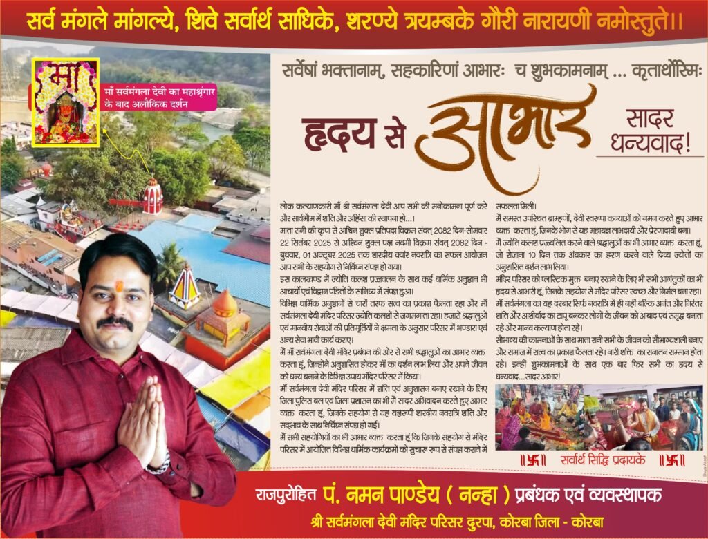 कोरबा/बिलासपुर। देश के लब्ध प्रतिष्ठित न्युज चैनल जी न्युज एमपी सीजी द्वारा 25 मार्च 2026 को बिलासपुर में जी न्युज राईज-इमर्जिंग अवार्ड समारोह आयोजित किया गया, जिसमें छत्तीसगढ़ के उन समाज सेवकों एवं राष्ट्र निर्माण एवं समाज निर्माण में अपना उल्लेखनीय योगदान दिया है और आज भी दे रहे हैं।