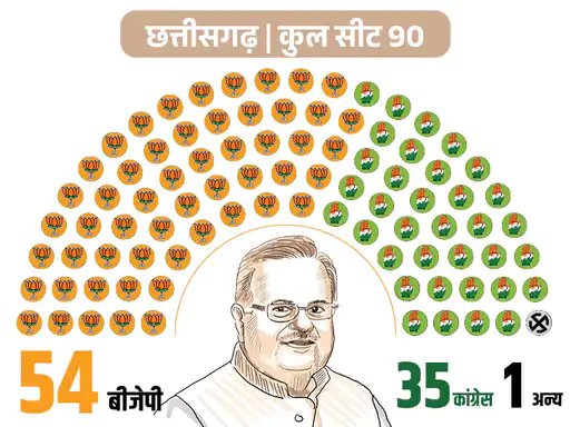 रायपुर, एजेंसी। छत्तीसगढ़ में भाजपा ने 54 सीटों के साथ सरकार बना ली। अपने इतिहास में भाजपा ने सबसे ज्यादा सीटों पर जीत दर्ज की। इसी तरह कांग्रेस ने अब तक सबसे कम 35 सीटें हासिल की है। भाजपा का बहुमत आने के बाद जब सीएम रेस की बात आई, तो रायगढ़ से जीते ओपी चौधरी के बारे में तेजी से अफवाह फैली कि उन्हें दिल्ली बुला लिया गया है। आखिर में ओपी चौधरी को ट्वीट करना पड़ा कि ये झूठी खबर फैलाई गई है। इधर, पिछली बार भारतीय जनता पार्टी का वोट शेयर 32.97 प्रतिशत था, इस बार 14 प्रतिशत बढ़कर 46.27 प्रतिशत हो गया है। यह अब तक भाजपा का सर्वाधिक वोट शेयर प्रतिशत है। सीएम के लिए पहला नाम डॉ. रमन सिंह का बहुमत मिलने के बाद भाजपा में अब सीएम की रेस है। डॉ. रमन सिंह का नाम सबसे आगे है, लेकिन पार्टी शुरुआत से ही ओबीसी की बात करती रही है। ऐसे में प्रदेश अध्यक्ष अरुण साव और धरमलाल कौशिक बड़ा चेहरा हैं। वहीं आदिवासी चेहरे के रूप में विष्णुदेव साय और रामविचार नेताम बड़ा नाम हैं। दूसरी ओर नेता प्रतिपक्ष के लिए कांग्रेस की ओर से चरणदास महंत और भूपेश बघेल का नाम पहली कतार में है। भूपेश बघेल ओबीसी के रूप में कांग्रेस के पास राष्ट्रीय चेहरा हैं, इसलिए हो सकता है कि लोकसभा चुनाव में कांग्रेस इसे भुनाना चाहे।