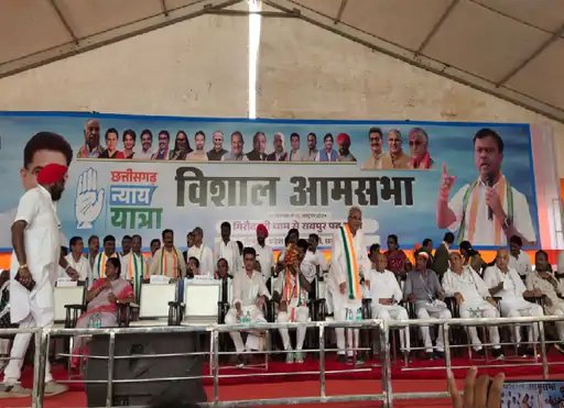 कांग्रेस न्याय यात्रा…भाषण के दौरान महंत भूले बैज का नाम:पूर्व सीएम, PCC चीफ दिखे मोबाइल में बिजी; CM साय बोले- क्षमा यात्रा निकालनी चाहिए