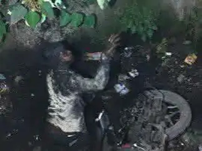 कोरबा में युवक बाइक समेत खुले नाले में गिरा:दलदल में फंसा रहा, स्थानीय लोगों ने रेस्क्यू कर निकाला, निगम पर आक्रोश
