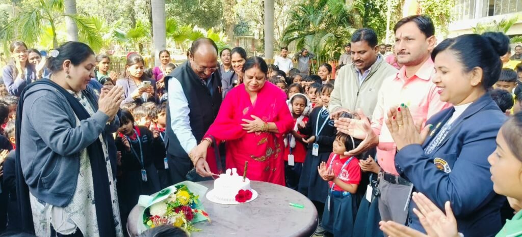 अंत मे विद्यालय के चेयरमेन पीएमजेएफ लायन डॉ राजकुमार अग्रवाल के विवाह वर्षगांठ पर सभी शिक्षकों और बच्चों की उपस्थिति में केक काटकर उनको शुभकामनाएं दी गयी।