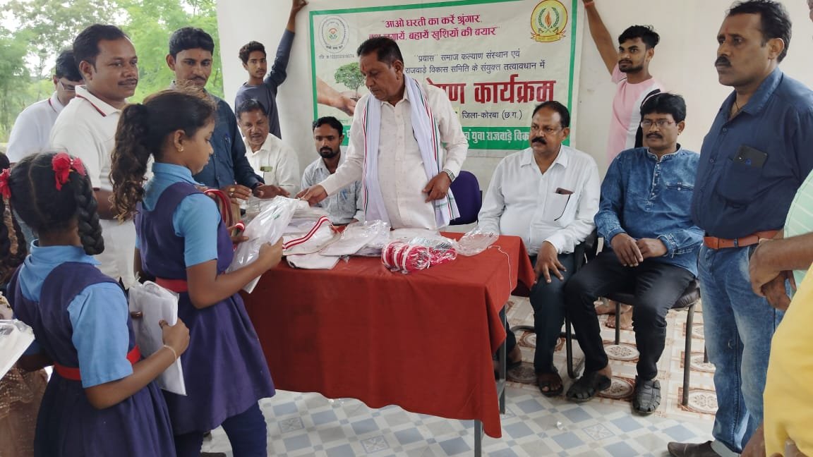 कोरबा। छत्तीसगढ़ प्रयास समाज कल्याण संस्थान एवं युवा आदर्श राजवाड़े कुर्मी समाज के संयुक्त तत्वावधान में ग्राम कटसीरा में वृहद वृक्षारोपण का आयोजन कर धरती को हरितिमा बनाने के संकल्प में छोटा सा योगदान दिया। कार्यक्रम में आदिवासी शाला आश्रम, ग्राम पंचायत भवन, सामुदायिक उपस्वास्थ्य केन्द्र में बाटल पाम, एरिकापाम, मोरपंखी, एक्सोरा, गुड़हल, नीम, जामुन, कटहल, अमरूद, आंवला सहित अन्य फलदार, फूलदार एवं औषधी पौधों का रोपण किया और जन-जन से पौधरोपण के लिए आह्वान किया गया। कार्यक्रम में सरपंच, पंच, आदर्श राजवाड़े कुर्मी समाज के केन्द्रीय अध्यक्ष नर्मदा शंकर राजवाड़े, दीपका शहर अध्यक्ष संतोष राजवाड़े, कोरबा शहर अध्यक्ष, कृपासिंधु राजवाड़े सहित जगदीश राजवाड़े, बलिराम राजवाड़े, प्रयास अध्यक्ष, प्रीतमलाल राजवाड़े, गेंदराम राजवाड़े, राजाराम, श्रीराम, शुभम, कृष्णा, शिक्षक शैलेन्द्र राजवाड़े, संतोष कृष्ण कुमार, श्रीकांत, दिनेश, योगेश, देवव्रत, सुभाष, राजेन्द्र गुरूजी, विवेक, महेन्द्र, पप्पू, निखिल, कटसीरा अध्यक्ष नरोत्तम, धनेश्वर, चित्रपाल, सेजल सहित स्कूल एवं आश्रम के बच्चे उपस्थित थे। इस कार्यक्रम में श्रीमती पुष्पलता राजवाड़े, कृष्णा क्लाथ एवं रेडीमेट गेवरा बस्ती के संचालक मनीष भाई का विशेष सहयोग रहा। कार्यक्रम के अंत में कोरबा शहर अध्यक्ष कृपासिंधू राजवाड़े ने सभी का आभार जताया।