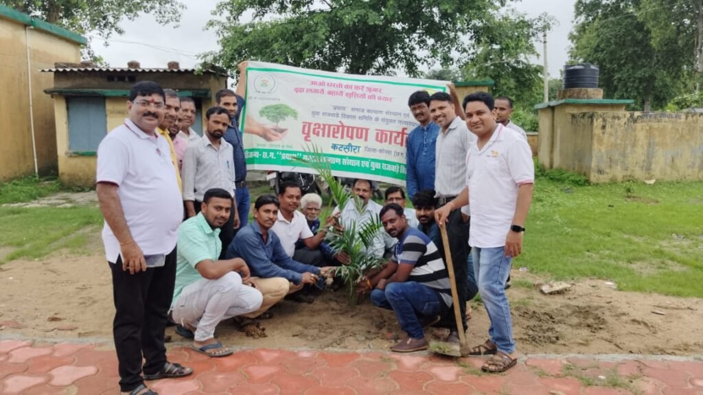 प्रयास एवं युवा आदर्श राजवाड़े कुर्मी समाज ने किया कटसीरा में पौधरोपण