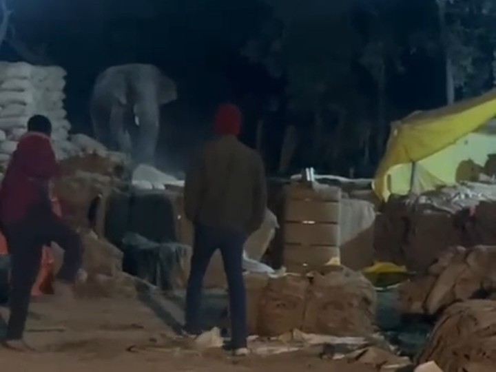 चचिया धान केंद्र में घुसा हाथी:कर्मचारियों में अफरा-तफरी, वन विभाग ने जंगल की ओर खदेड़ा