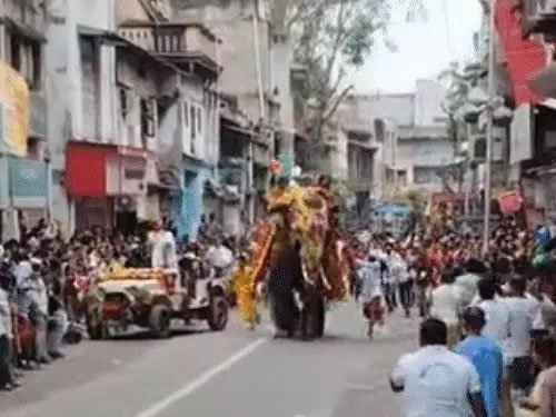 जानकारी के मुताबिक, हाथी डीजे और सीटी की आवाज से बेकाबू हुआ था। हाथी को वन विभाग के अमले ने दो मादा हाथियों की मदद से काबू में किया। इसके बाद उसे और दोनों मादा हाथियों को जुलूस से हटा दिया गया। बाकी यात्रा में 14 हाथी शामिल हुए।