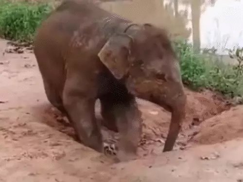 तमोर पिंगला एलीफेंट रिजर्व में बेबी एलीफेंट कीचड़ में खेलता हुआ दिखाई दिया।
