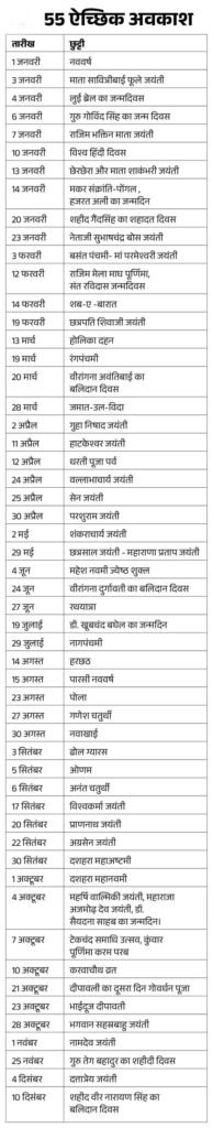 55 ऐच्छिक अवकाश में से 3 छुट्टी ही ले सकेंगे