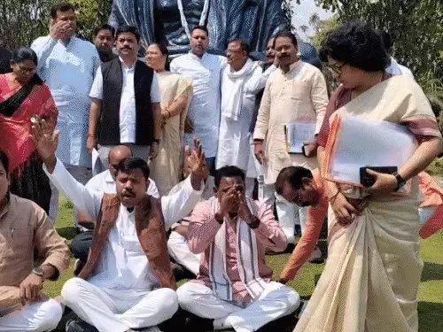 सदन में ईडी की कार्रवाई के खिलाफ गर्भ गृह तक पहुंचे कांग्रेस विधायकों को सस्पेंड किया गया।