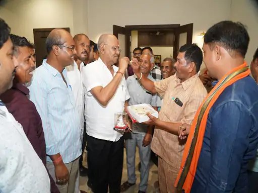 रायपुर,एजेंसी। रायपुर के कुछ किसान मिठाई लेकर बृजमोहन अग्रवाल से मिलने पहुंचे और उनका मुंह मीठा कराया। सांसद कार्यालय की ओर से मिली जानकारी के मुताबिक, किसान अपनी जमीन के लिए 32 साल से सरकारी दफ्तरों के चक्कर काट रहे थे। बृजमोहन की दखल के बाद इतने साल बाद इनके जमीन की रजिस्ट्री हो पाई।