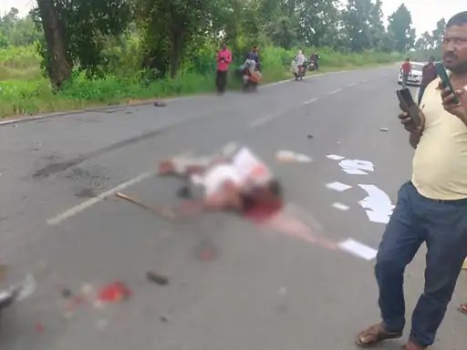 हादसे के बाद सड़क पर दोनों मृतकों के शव।