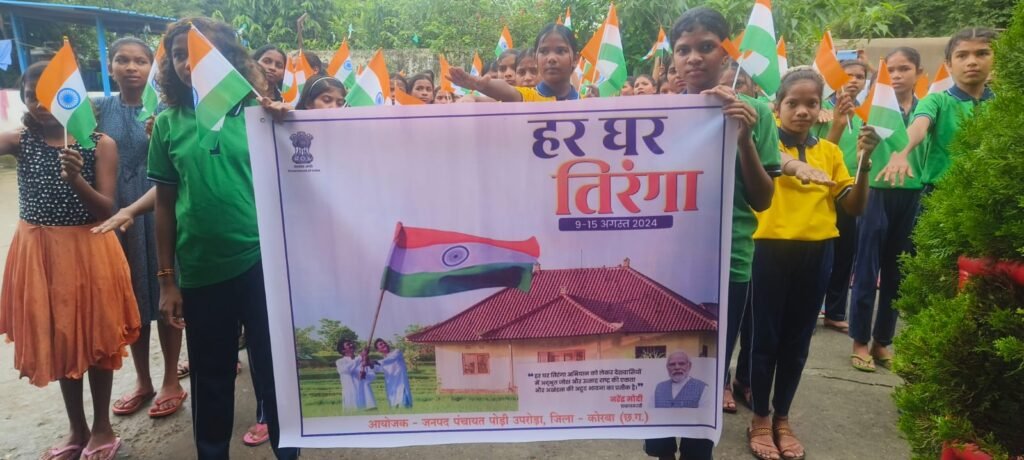 कोरबा। आज जनपद पंचायत पोड़ी उपरोड़ा में जनपद पंचायत पोड़ी उपरोड़ा सीईओ के मार्गदर्शन में स्वतंत्रता सप्ताह आजादी के अमृत महोत्सव (9 अगस्त से 15 अगस्त 2024) तक के दौरान “हर घर तिरंगा “कार्यक्रम के तहत जागरूकता रैली निकाली गई और रैली के माध्यम से लोगो से हर घर तिरंगा फहराने की अपील की गई। कार्यक्रम नोडल रूपेश कहरा बीपीएम, अनिल एबीपी, जीवन एसबीएमजी ,कस्तूरबा गांधी बालिका आवासीय विद्यालय के अधीक्षिका मैम, बच्चों और पोड़ी उपरोड़ा के अधिकारी/कर्मचारी व पिरामल टीम उपस्थित हुए। इसी तरह आजादी के अमृत महोत्सव अंतर्गत कस्तूरबा गांधी बालिका आवासीय विद्यालय कोरबा में भी कार्यक्रम का आयोजन किया गया।