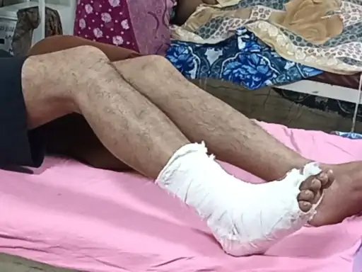 सरिए से हमले में दाहिना पैर फ्रैक्चर हो गया।