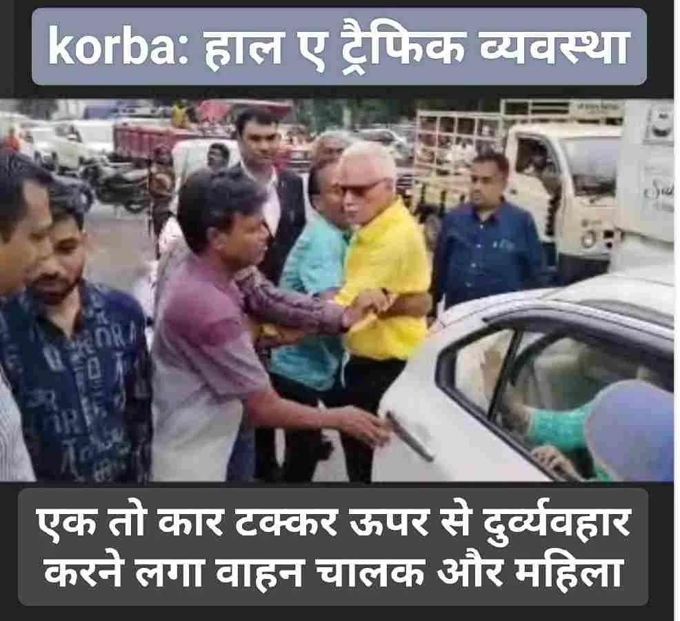 कोरबा। घंटाघर के पास पूर्व नगर निगम आयुक्त अशोक शर्मा अपनी कार से जा रहे थे। इस दौरान एक अन्य कार चालक ने लापरवाहीपूर्वक वाहन चलाते हुए उनकी कार को टक्कर मार दी। पूर्व आयुक्त शर्मा टक्कर मारने पर समझाइश देने नीचे उतरे तो कार में सवार परिवार ने उनसे बदतमीजी शुरू कर दी। पूर्व आयुक्त शर्मा ने गलती मानने के बजाए बदतमीजी करने पर क्रोधित होते हुए उन्हें जमकर फटकार लगाई। लोगों ने भी पहुंचकर लापरवाहीपूर्वक उनकी कार को टक्कर मारने वाले कार चालक व बदतमीजी कर रहे लोगों को उनकी गलती बताई।