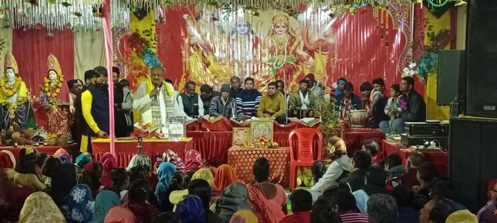 जहां आयोजन समिति के सदस्यों ने अतिथियों को पुष्पगुच्छ भेंटकर स्वागत किया । इस अवसर पर श्री अग्रवाल एवं श्री प्रसाद ने प्रभु श्रीराम की पूजा अर्चना कर क्षेत्रवासियों की मंगल कामना करते हुए श्री अग्रवाल ने कहा कि इस वार्ड में पिछले 25 वर्षों से प्रतिवर्ष अखण्ड नवधा रामायण कथा का आयोजन किया जा रहा है, जिसके लिए आयोजन समिति बधाई के पात्र हैं । श्री अग्रवाल ने कहा कि ऐसे आयोजन से जहां माहौल भक्तिमय रहता है वहीं क्षेत्र में भातृत्व भाव की भावना भी जागृत होती है । हमारी कामना है कि प्रभु श्रीराम आपके सभी मनोकामना पूरी करे ।