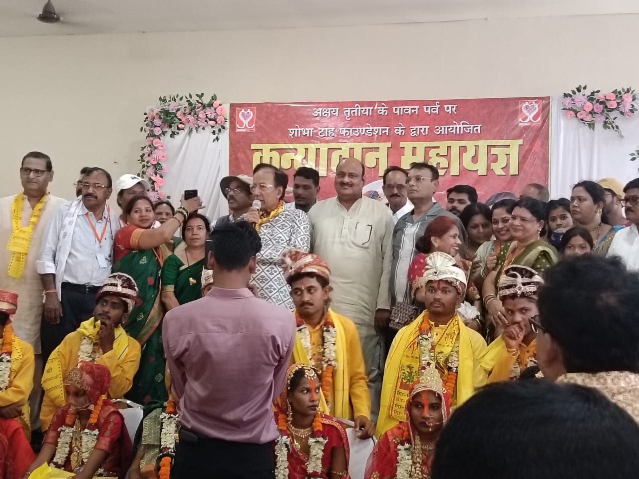 कोरबा। अक्षय तृतीया के दिन शुभ लग्न पर प्रतिवर्ष होने वाले सामुहिक विवाह में इस बार शोभा टाह फाउण्डेशन द्वारा बिलासपुर के जगन्नाथ मंगलम में किया गया । शोभा टाह फाउण्डेशन के संस्थापक अनिह टाह ने बताया कि प्रतिवर्ष अक्षय तृतीया के दिन कन्यादान महायज्ञ का आयोजन किया जाता है । यह वर्ष 12वां वर्ष है। इस वर्ष 10 बेटियों का विवाह संपन्न हुआ है । इस मौके पर विशेष रूप से उपस्थित पूर्व मंत्री जयसिंह अग्रवाल ने सभी नव दांपत्य जोड़ों को शुभ आशीष देते हुए कहा कि निर्धन परिवारों की बेटियों को सम्मानजनक एवं गरिमापूर्ण आयोजन के द्वारा पूरी विधि विधान से विवाह कराना महान पुनीत कार्य होता है । मैं शोभा टाह फाउण्डेशन के सभी सदस्यों को इस पुनीत कार्य के लिए बधाई एवं शुभकामनाएं देता हूं एवं नवदाम्पत्य जीवन में बंधने वाले नव दम्पत्तियों को खुशहाल जीवन की शुभकामनाएं देता हूं।