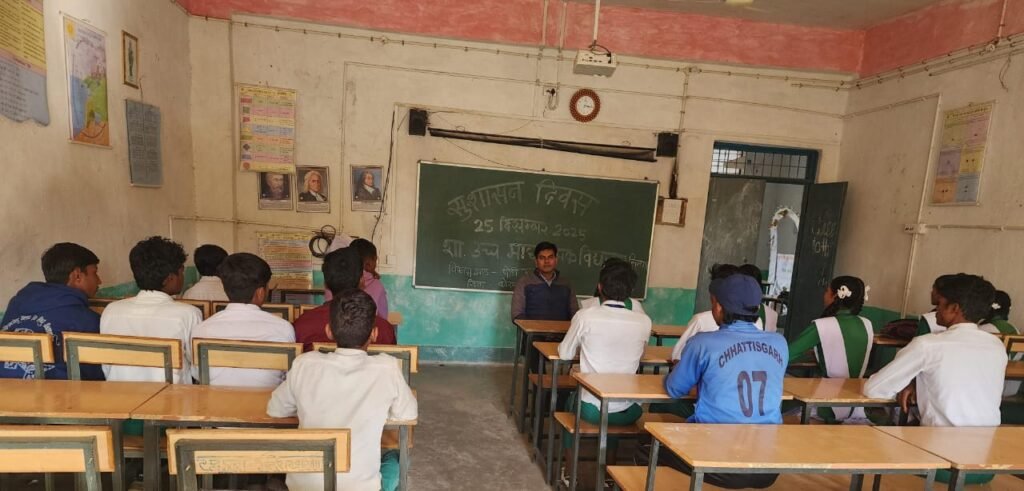 कोरबा। जिले के दूरस्थ वनाँचल स्थित शासकीय उच्चतर माध्यमिक विद्यालय सिमगा, विकासखण्ड-पोड़ीउपरोड़ा में 25 दिसम्बर 2025 को पूर्व प्रधानमंत्री भारत रत्न स्व. अटल बिहारी बाजपेयी जी की जयंती सुशासन दिवस के अवसर पर विद्यार्थियों के मध्य विविध कार्यक्रम एवं परिचर्चा आयोजित की गई।