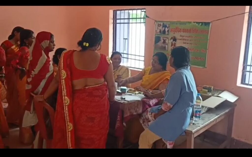 आयुर्वेद चिकित्सा शिविर का लाभ उठाया नारी शक्ति ने