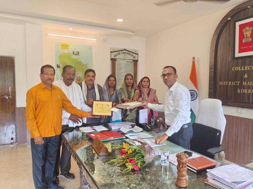 कोरबा। 79वें स्वतंत्रता दिवस के अवसर पर भारत सरकार नई दिल्ली द्वारा कोरबा जिले के ग्राम पंचायत दोंदरों को जलसंरक्षण के क्षेत्र में उत्कृष्ट कार्य के लिए प्रमाण पत्र प्रदान किया गया है। नई दिल्ली में सम्मान प्राप्त करने के पश्चात जनपद पंचायत कोरबा सीईओ ने जनपद अध्यक्ष श्रीमती बीजमोती राठिया, जनपद सदस्य क्षेत्र क्र. 06 श्रीमती ललिता बलराम साहू, पूर्व जनपद सदस्य कौशल प्रसाद पटेल, ग्राम पंचायत दोंदरो सरपंच बंधन सिंह कंवर व पूर्व सरपंच श्रीमति उदमबाई कंवर व दोंदरो उपसरपंच श्रीमती प्रमिला मनहरण पटेल सहित अन्य ने कलेक्टर अजीत वसंत से मुलाकात की और जल शक्ति मंत्रालय भारत सरकार द्वारा जल जीवन मिशन के उत्कृष्ट कार्य के लिए दिये गये प्रमाण पत्र के संबंध में विस्तार से जानकारी दी। कलेक्टर वसंत ने सभी को बधाई देते हुए कार्यों की प्रशंसा की और शुभकामनाएं दी।