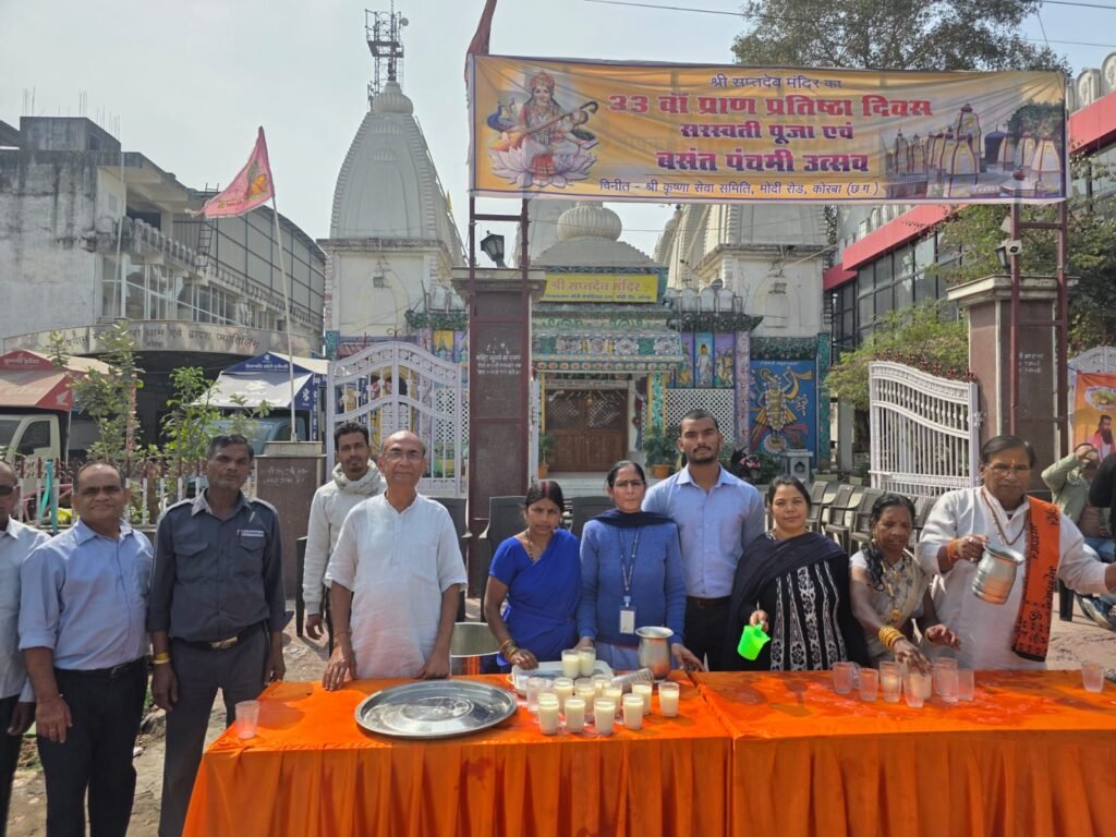 Divya Akashकोरबा। संत रविदास समाज उत्थान समिति, कोरबा के तत्वावधान में रविवार, 1 फरवरी 2026 को संत श्री रविदास जी की 649वीं जयंती के पावन अवसर पर एक भव्य शोभायात्रा का आयोजन किया गया। यह शोभायात्रा सीतामणी से प्रातः 12.00 बजे प्रारंभ होकर नगर के प्रमुख मार्गों से होते हुए दोपहर 1.00 बजे श्री सप्तदेव मंदिर पहुँची।