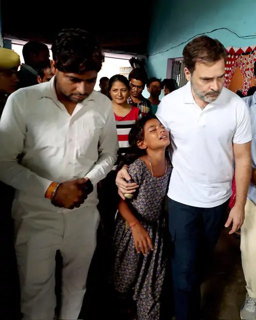 उत्तर प्रदेश , एजेंसी। कांग्रेस सांसद राहुल गांधी ने शुक्रवार को हाथरस हादसे के पीड़ितों से मुलाकात की। परिजन उनके गले से लिपटकर रोए। राहुल ने सिर पर हाथ रखकर सांत्वना दी। हाथरस हादसे में मां को खोने वाली वाली एक बच्ची फफक-फफक कर रोने लगी तो राहुल से उसे संभाला और गले लगाया।