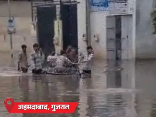 गुजरात के अहमदाबाद, वापी और राजकोट में गुरुवार को भारी बारिश से सड़क, घरों और दुकानों में पानी भर गया है। सावरकुंडला, राजुला में स्थानीय नदियां उफान पर आ गई हैं। नवसारी, वलसाड, डांग, दमण और दादरा नगर हवेली के लिए रेड अलर्ट जारी किया गया है।