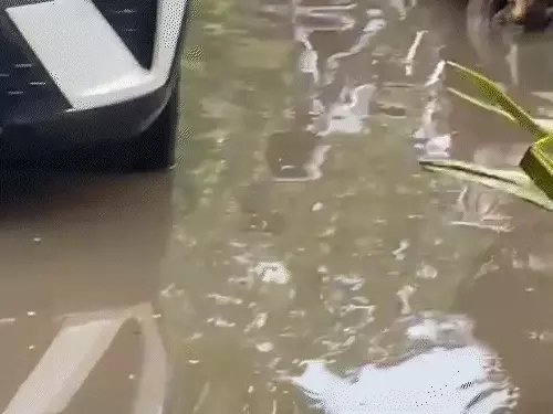 रायपुर में थोड़ी देर की बारिश के बाद सड़क पर पानी भर गया।